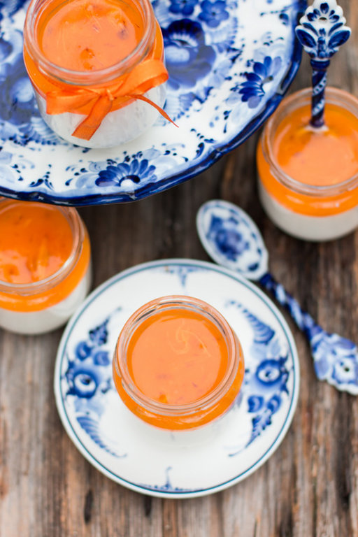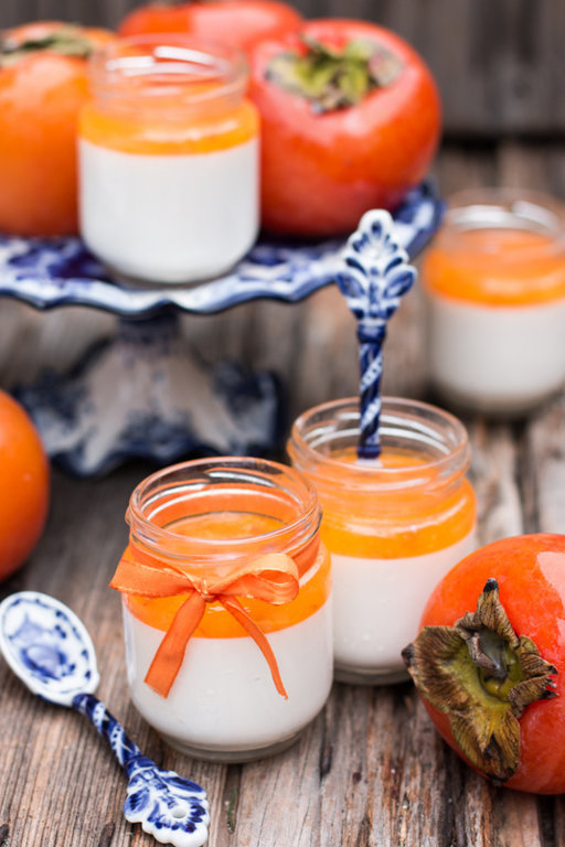 Перед подачей на стол, добавьте в каждую баночку по несколько ложек пюре из хурмы.