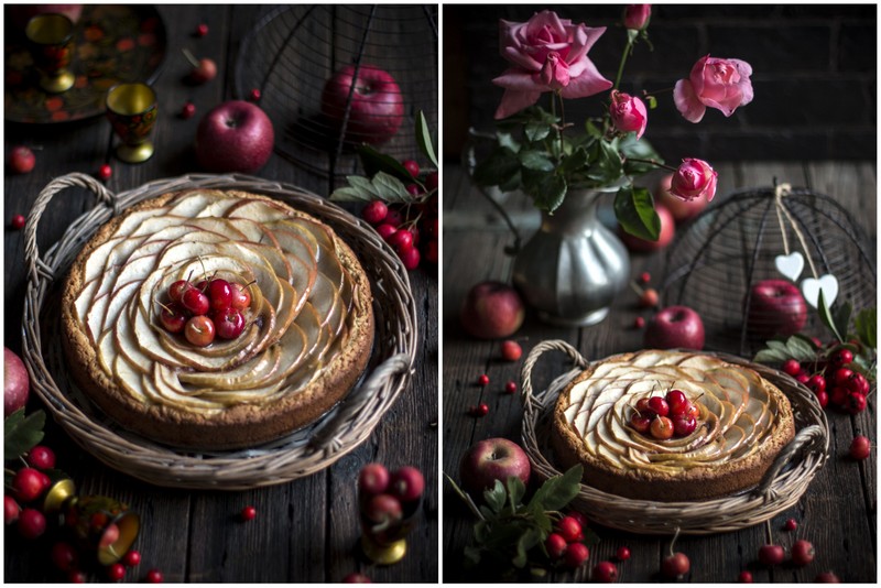 Пару ложек варенья смешать с 1 ложкой горячей воды и смазать яблоки.