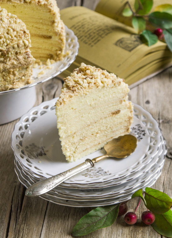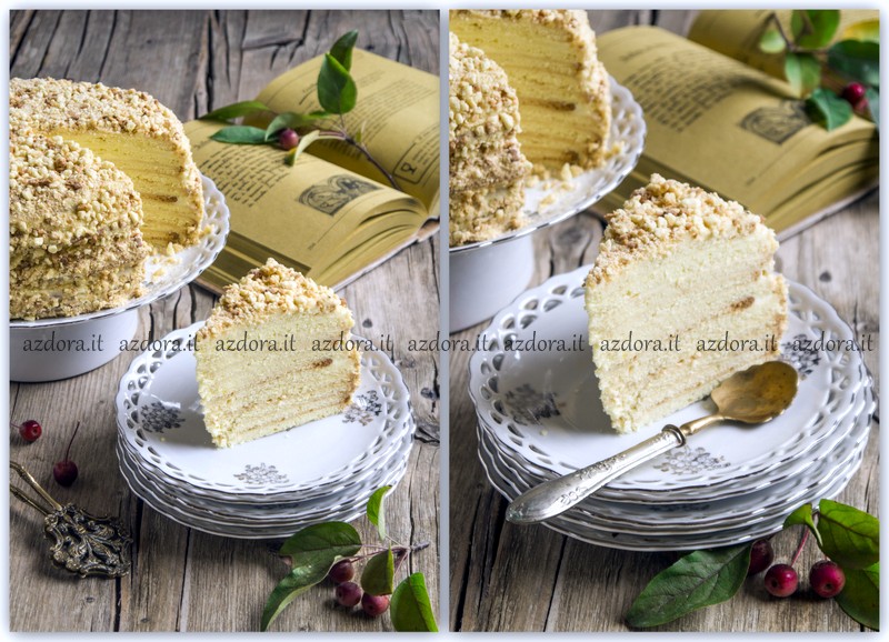 Если вы хотите более мокрый торт, то количество крема стоит увеличить или можно использовать меньше коржей, не 11, а, например, 8. Торт всё равно будет довольно высоким.