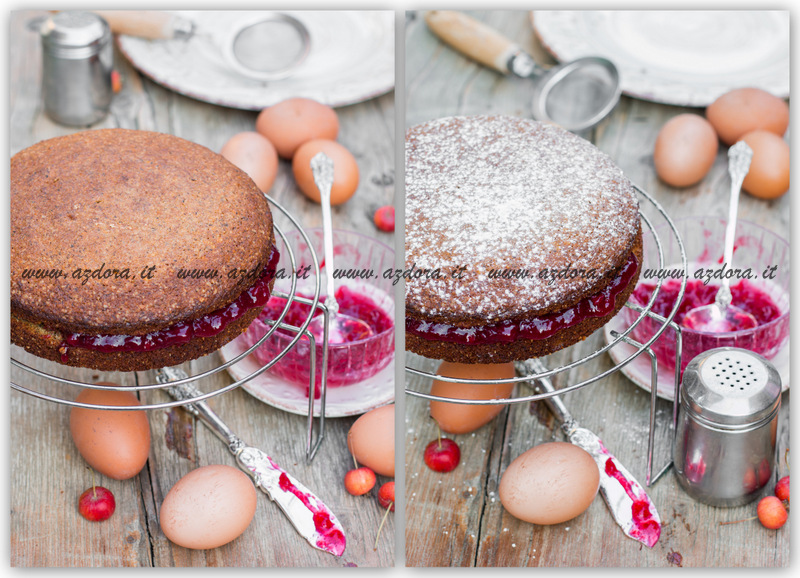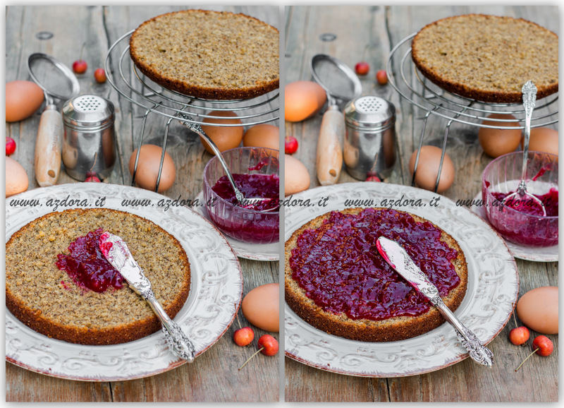 Готовый пирог остудите, разрежьте пополам и смажьте вареньем.