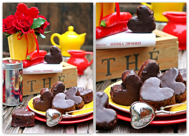 Приготовьте пропитку. Для этого вскипятите воду с сахаром и какао. Добавьте перчик по вкусу (от щепотки до 1/2 ч.ложечки). Пропитайте кексы, не доставая из из формочек. Чтобы пропитка прошла в глубину, наколите кексы деревянной палочкой. Оставьте отдыхать минимум 1 час. Готовые кексы перенесите на блюдо. Можно покрыть кексы шоколадной глазурью.