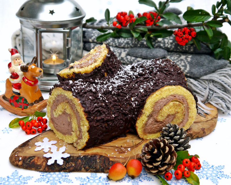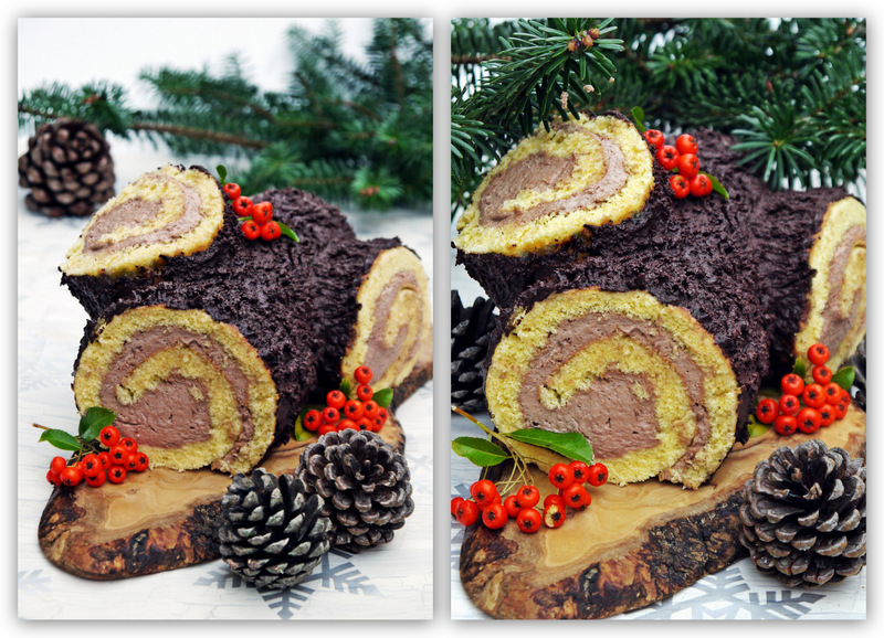 Приготовьте ганаш для обмазки рулета. Для этого растопите шоколад в сливках с маслом, перемешайте до однородной массы. Смажьте рулет ганашем.