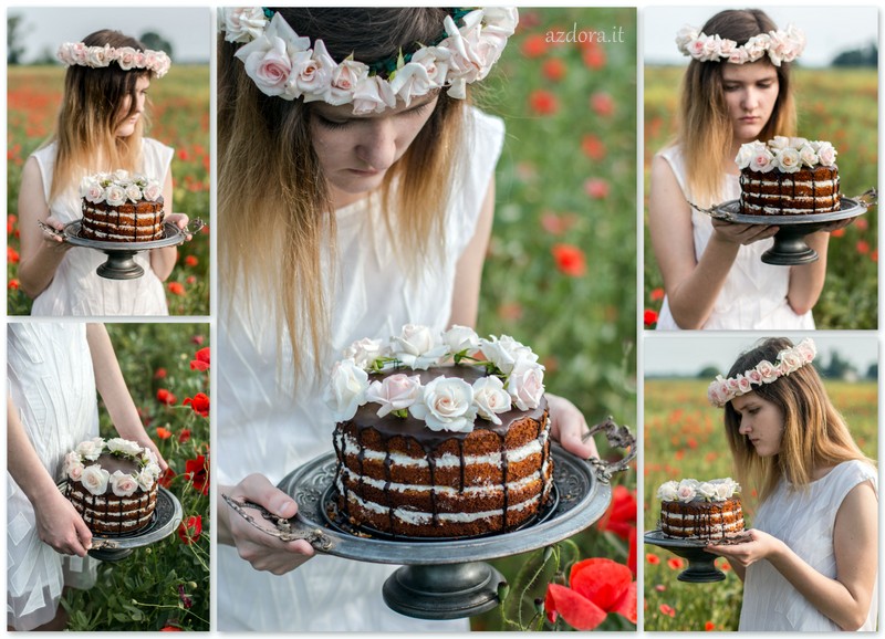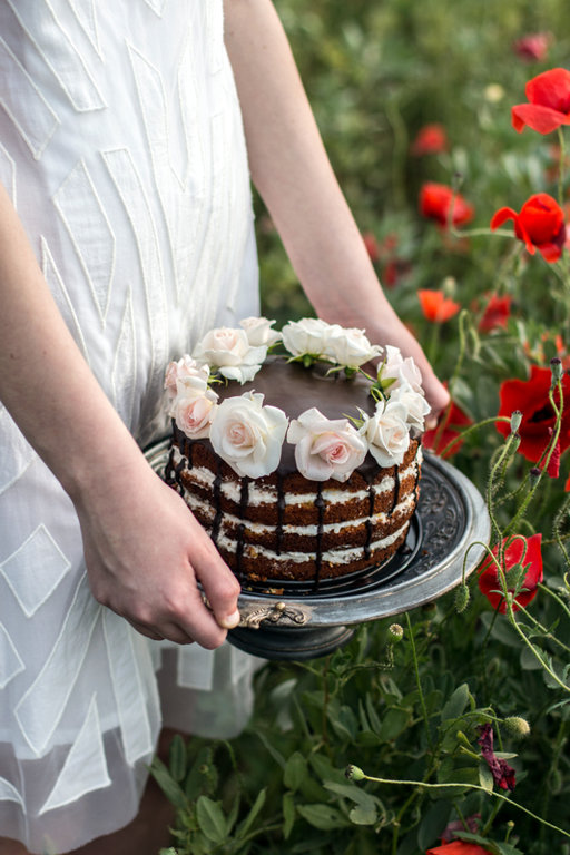 Как только они остынут, закрутить ломтики в розочки и украсить торт.