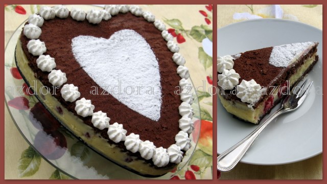 Украсить по вкусу. Я использовала трафарет для украшения сахарной пудрой и взбитые сливки, кооторые я нанесла с помощью шприца.