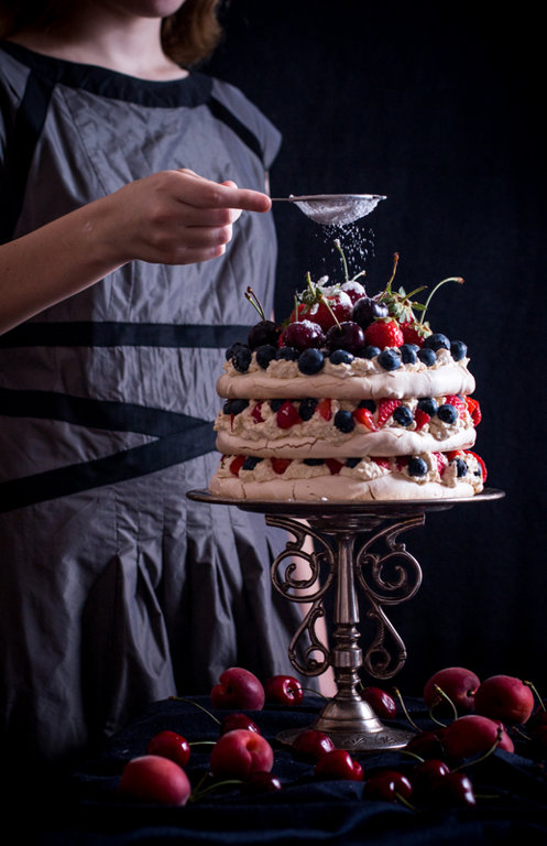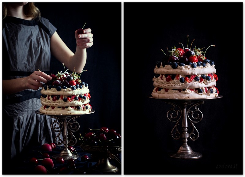 Украсить Павлову сверху взбитыми сливками. Можно присыпать порошком какао.