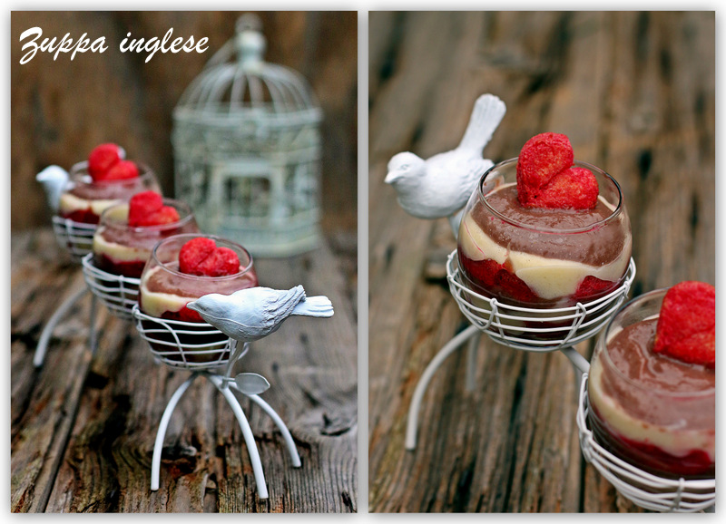 Кто был в моём регионе, безусловно, пробовал это сладкое блюдо – "цуппа" или "дзуппа инглезе" - английский крем (дословно - "английский суп"). Его готовят на основе заварного крема, шоколадного крема и бисквита ( или савойского печенья), пропитанного ликёром Alchermes. Этот десерт появился на столе Романьи в эпоху Возрождения. Один итальянский дипломат, возвратившись в Италию из Англии, попросил придворного повара герцога Д’Эсте приготовить ему  его любимый английский десерт trifle. Однако, пытаясь выполнить заказ, повар использовал местные ингредиенты, которые были у него под рукой, и таким образом, создал итальянский вариант этого сладкого блюда.  Английское дрожжевое тесто заменил на бисквит, сливки заменил на заварной крем. Со временем были добавлены другие продукты, которые превратили десерт в очень красочное блюдо: ликёр Alchermes, ароматный и ярко-красный, которым пропитывают бисквит, и какао, чтобы создать контраст с заварным кремом. К 1800 году этот крем был уже хорошо известен в Болонье и Ферраре.