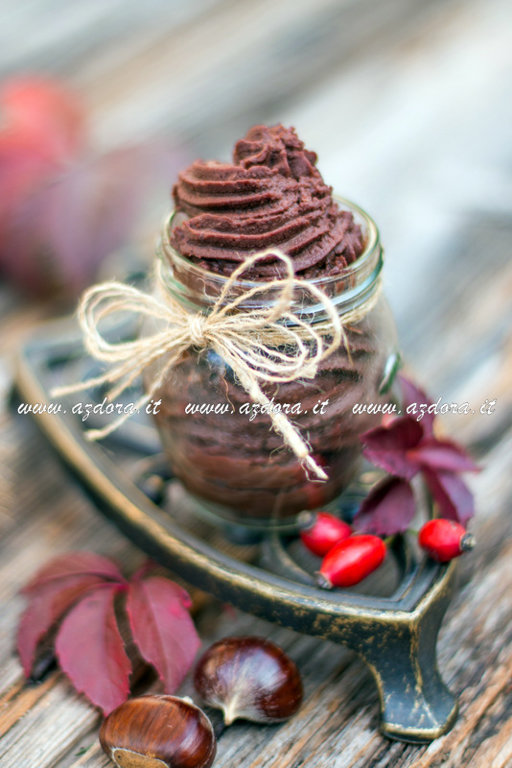 В этом рецепте  варёные каштаны смешивают с какао, сахаром и ромом ( или коньяком).