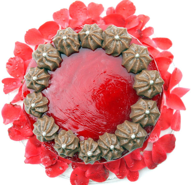Поставить торт Дзуппа инглезе на час в холодильник, чтобы он "взялся".Через час украсить его по вкусу и вернуть в холодильник ещё на пару часов.