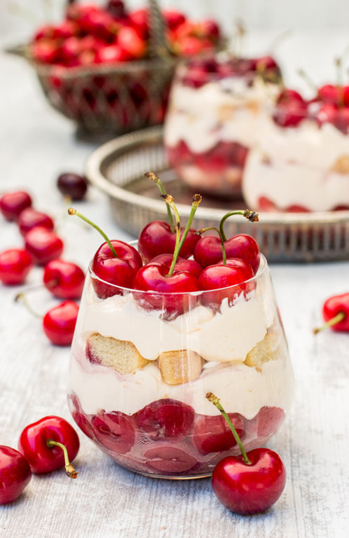 Теперь сделайте слой черешни. На черешню – слой крема. Повторите слои снова.
