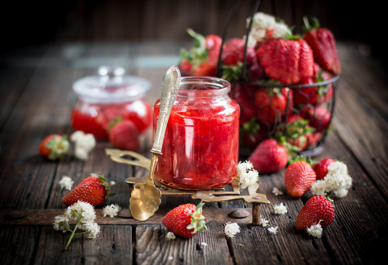 Пектин смешать с сахаром, добавить к клубнике и влить сок грейпфрута.