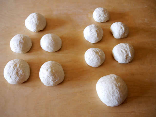 Затем первую половину разделите на 5 частей и скатайте каждую часть в шарики.