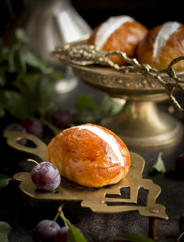 Достать маритоцци из духовки и смазать глазурью. Дать высохнуть глазури и смазать ещё раз.