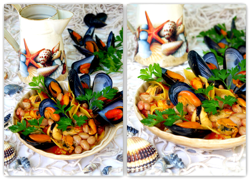 Pasta e fagioli con cozze. Паста с фасолью и мидиями