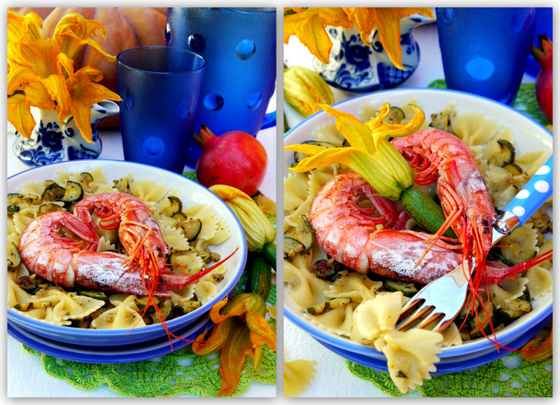 Pasta con gamberi e zucchine. Паста с креветками и цукини