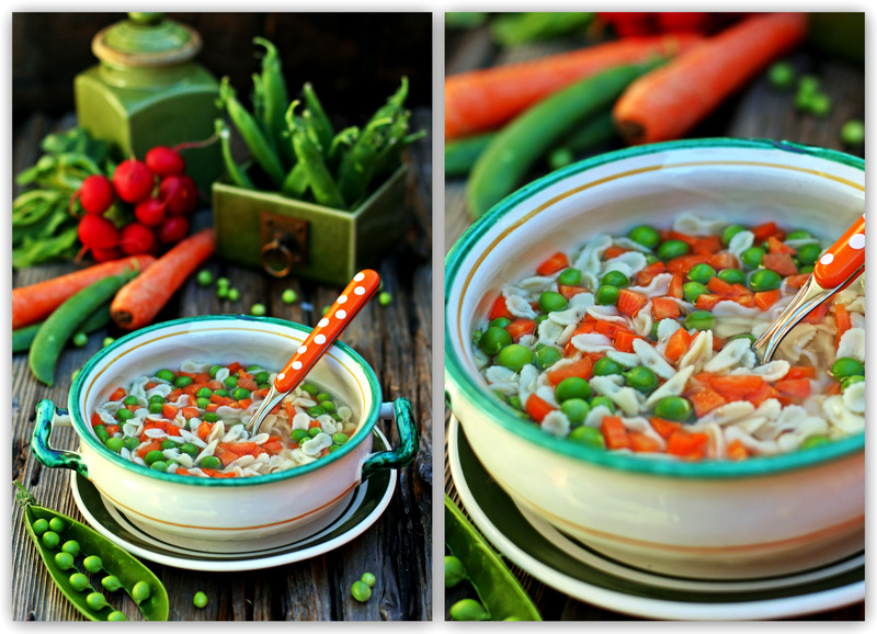 Farfalline nel brodo vegetale speziato. Бабочки в пикантном овощном бульоне