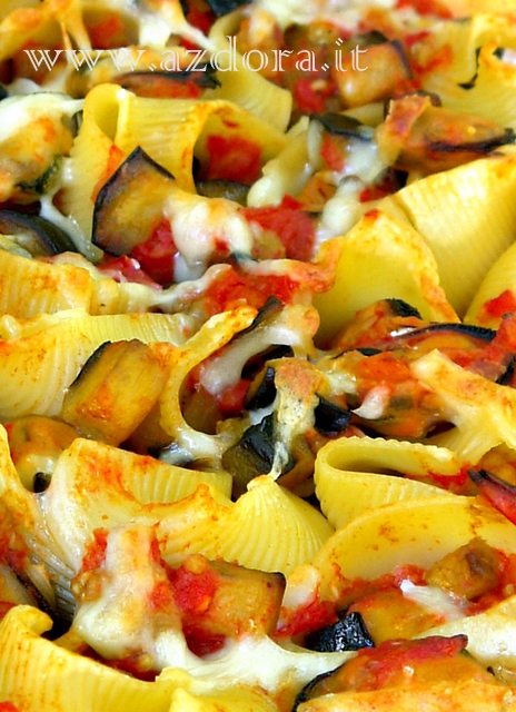Lumaconi con melanzane e cozze. Лумакони с баклажанами и мидиями