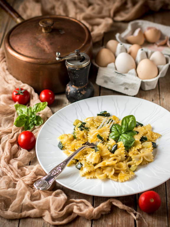 Рецепт называется так, потому что готовится, как традиционная карбонара, тлько гуанчале заменяется на цукини. Блюдо становится легче. Вкусное оно очень! И ещё его приемущество в том, что и в холодном виде оно прекрасно!