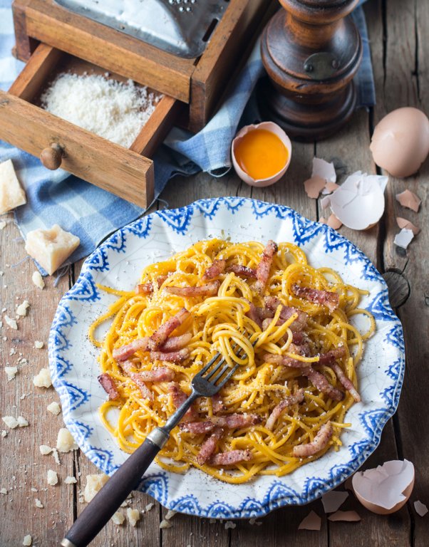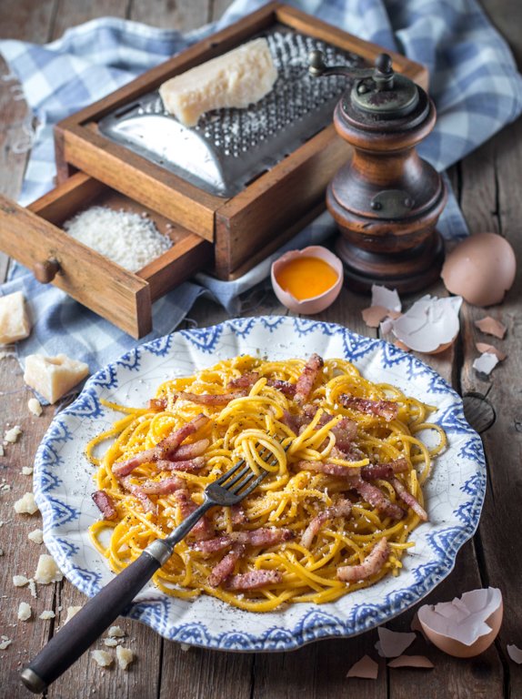 Но ни в коем случае нельзя заливать пасту соусом в сковороде. Яйцо запечётся от контакта с горячим и у вас получится яичница. Нам не нужна паста с яичными хлопьями. Наша цель: дать спагетти пропитаться яичным соусом так, чтобы, когда блюдо съедено, ни в миске, ни на тарелке не осталось ни капли соуса. По секрету скажу вам, что если вы не нашли пекорино, можно использовать пармиджано. Говорю вам это шепотом, чтоб меня не услышали повара из Сообщества.