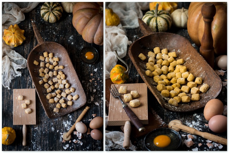 Существуют две характерные черты, присущие истинным итальянским ньокки: ньокки должны быть совершенно белыми по цвету (возможны лёгкие оттенки) и должны иметь ребристую поверхность. Таков их внешний вид. Консистенция? На эту тему можно написать трактат. Не так-то и просто добиться той уникальной комбинации между податливостью и мясистостью, мягкостью и эластичностью. Это сочетание не только трудно описать словами, но и непросто достичь. Конечно, настоящая итальянская хозяйка с закрытыми глазами угадает на ощупь ту, самую верную, консистенцию, и превратит ньокки в произведение кулинарного искусства. Чтобы научиться этому, я много пробовала и экспериментировала и сегодня могу сказать, что и у меня есть мой секрет приготовления ньокки.