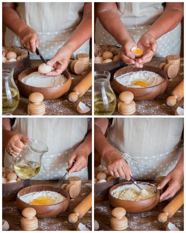 Существуют различные рецепты теста для корцетти: с яйцами и без, только с яичными желтками, с маслом. Иногда добавляют в тесто вареный картофель и замешивают его на воде или белом вине.