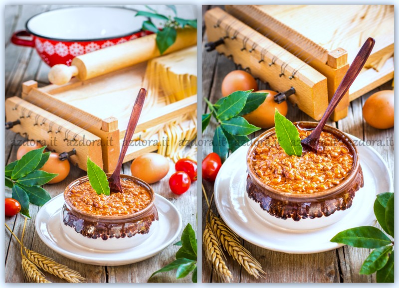 Меня часто спрашивают, почему так долго готовится рагу. Говорят, фаршу и 20 минут хватит. Отвечаю: за 20 минут мясо жарится. А рагу – это не жареное мясо. Это мясо тушёное в томатном соусе на минимальном огне. Если огонь увеличить, мясо снизу начнёт жариться, а соус быстро выкипать. Этого нельзя допускать. В Неаполе рагу готовят около 6 часов и это ещё не предел - доходит и до 10. Итальянские бабушки говорят: «Чем дольше готовится рагу, тем оно вкуснее.» Истинное болонское рагу, не имеет ничего общего с тем кошмаром, которое продают во всём мире уже даже и в консервных банках под названием “соус bolognese”. Кое-где умудрились засунуть в ту же банку и спагетти, хотя итальянцы, и в особенности жители Эмильи-Романьи, никогда не едят рагу со спагетти, а только со свежей яичной пастой, которой являются, например, тальятелле. В частности и для того, чтобы защитить рагу от подобных издевательств и подделок, в 70-х годах Итальянская Академия Кулинарии и ассоциация Confraternita del Tortellino (в переводе что-то пита Братства по защите тортеллино) положили на хранение в Торговую Палату Болоньи несколько традиционных болонских рецептов, в числе которых так же и рецепт рагу. Традиционный рецепт требует использования говяжего фарша с добавлением 1/3 грудинки. Для лазаньи можно немного облегчить рагу и использовать смешанный фарш из говядины и свинины.