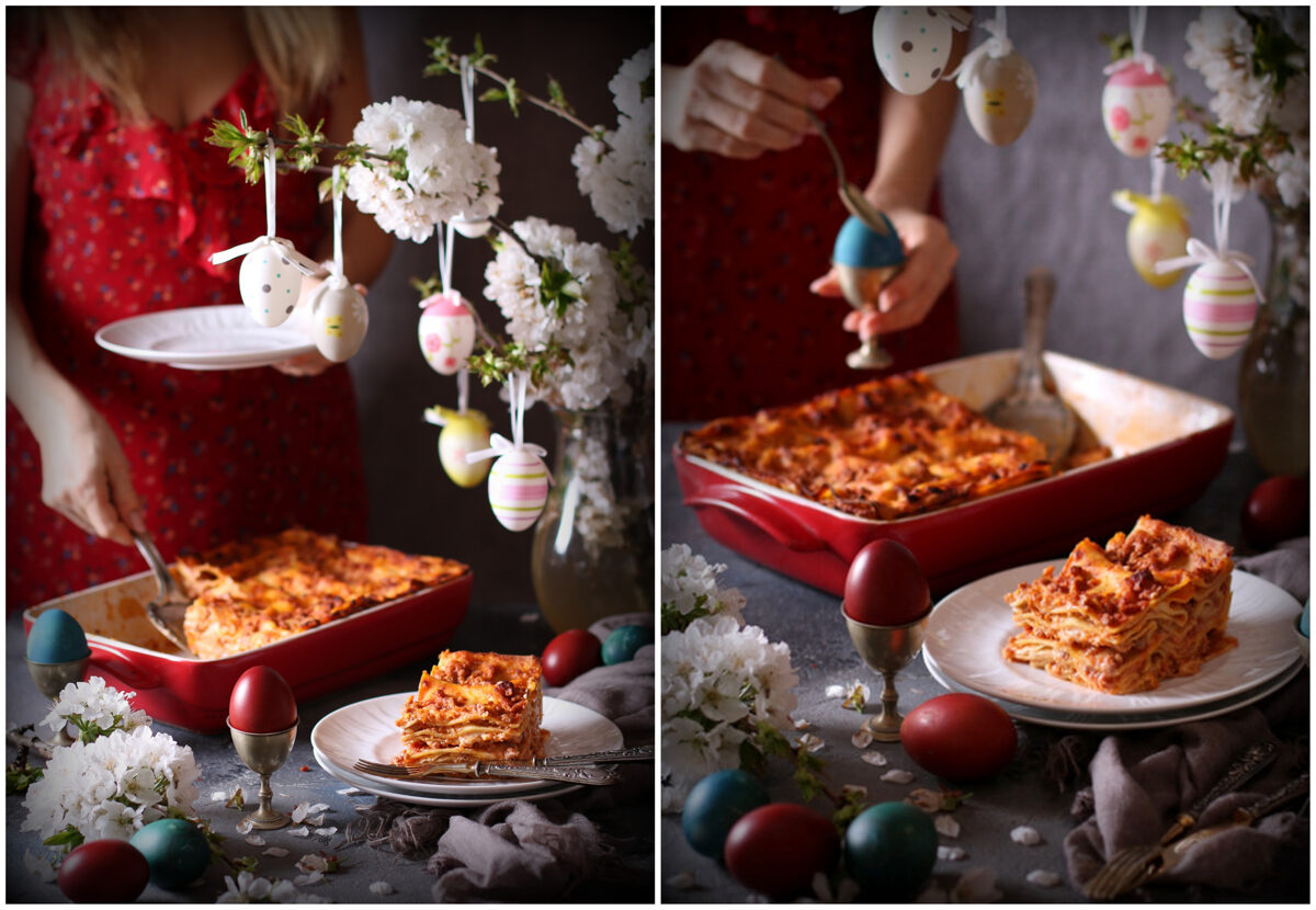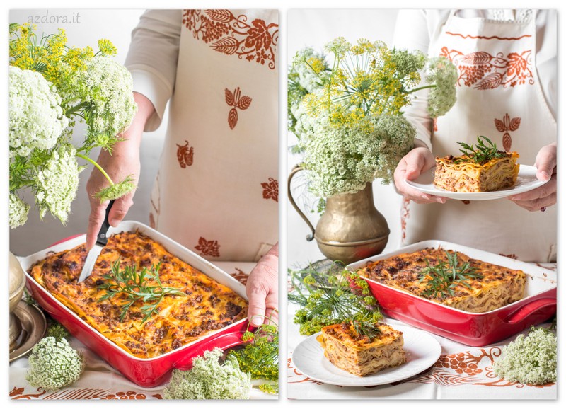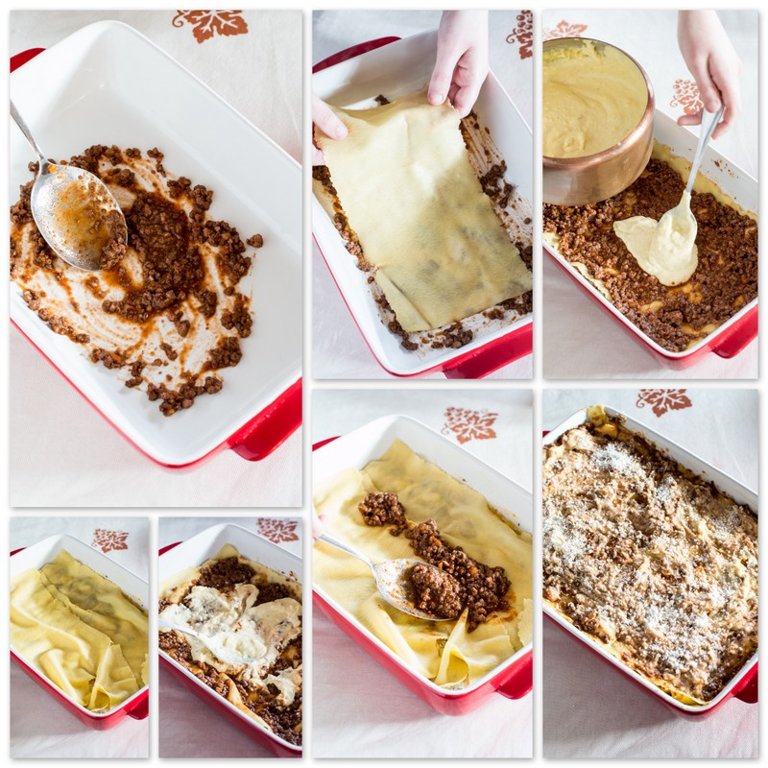 Три основных составляющих лазаньи — это сфолья, соус «рагу» и соус «бешамель». Если вы думаете, что приготовление лазаньи — слишком долгий процесс, поступайте как я. Я готовлю лазанью в два приёма. Вечером накануне делаю рагу и бешамель, а утром замешиваю тесто, собираю и запекаю лазанью. Такое разделение на два этапа значительно упрощает работу. Итак, поговорим о составляющих.