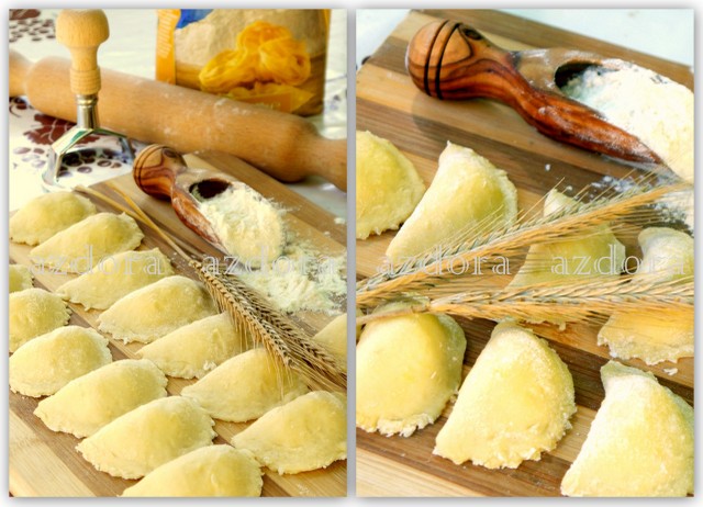 Сложить кружочки пополам и хорошо защипить края, чтобы получились полумесяцы.