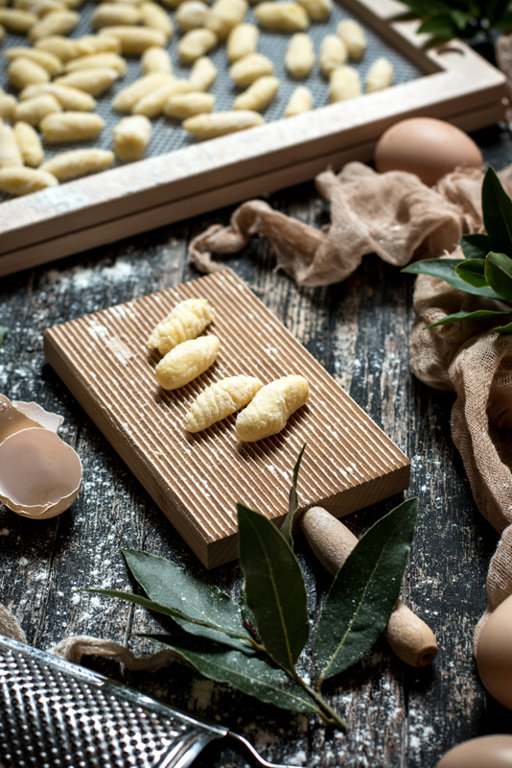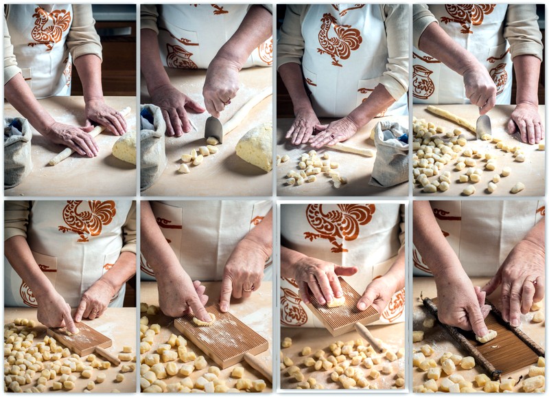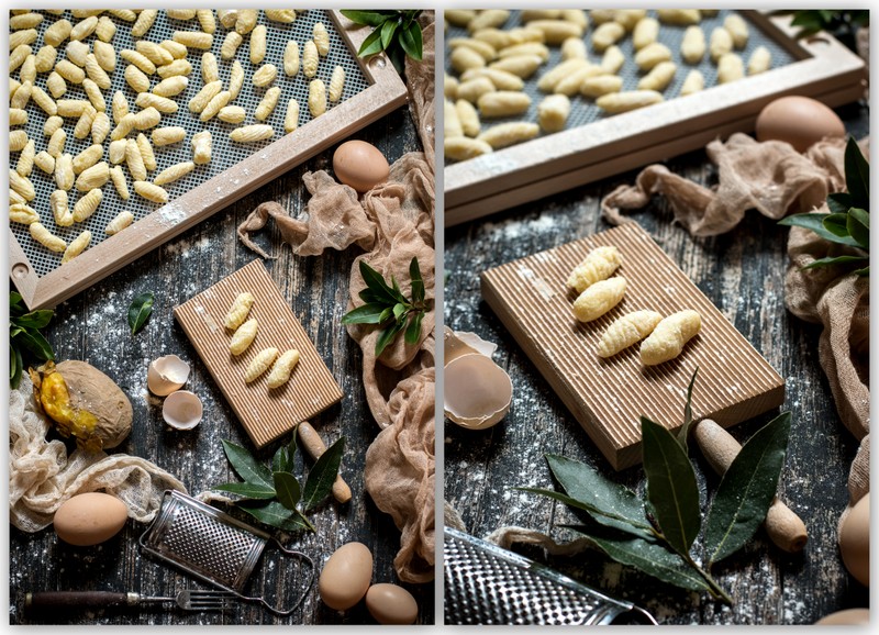 Существуют две характерные черты, присущие истинным итальянским ньокки: ньокки должны быть совершенно белыми по цвету (возможны лёгкие оттенки) и должны иметь ребристую поверхность. Таков их внешний вид. Консистенция? На эту тему можно написать трактат. Не так-то и просто добиться той уникальной комбинации между податливостью и мясистостью, мягкостью и эластичностью. Это сочетание не только трудно описать словами, но и непросто достичь. Конечно, настоящая итальянская хозяйка с закрытыми глазами угадает на ощупь ту, самую верную, консистенцию, и превратит ньокки в произведение кулинарного искусства. Чтобы научиться этому, я много пробовала и экспериментировала и сегодня могу сказать, что и у меня есть мой секрет приготовления ньокки.