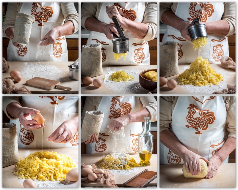 тесто правильной консистенции: картофель, муку и яичный белок следует замешивать очень быстро, не дожидаясь, пока картофель начнёт отдавать крахмал, от чего тесто намокнет и размякнет.