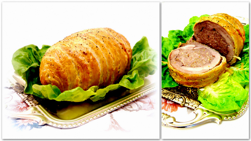 Обкрутить готовый рулет полосками теста, смазать взбитым яйцом, присыпать крупной морской солью ( я присыпала гавайской чёрной солью и розовой гималайской солью) и выпекать 30 мин или, пока тесто не подрумянится, при 180° .