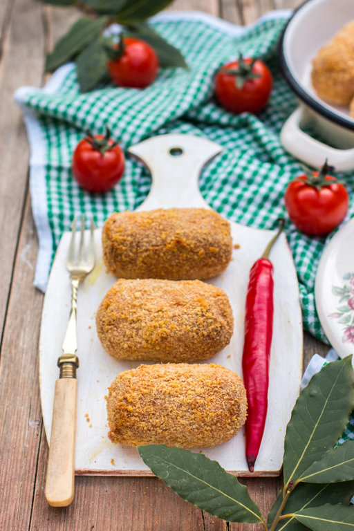 Затем каждую котлетку прокатите по поверхности, нажимая слегка на неё ладонью, чтобы получилась характерная цилиндрическая форма.