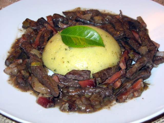 Подавать с полентой ( как на фото) или с картофельным пюре.