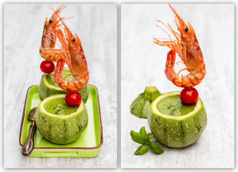 Можно подать суп-пюре в круглых цукини, предварительно срезав у них верхушку и удалив мякоть.