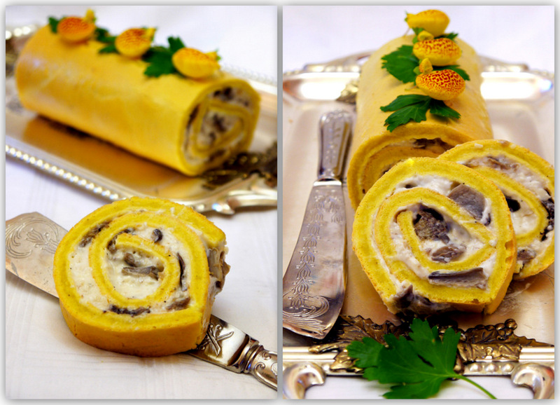 Рулет с грибами и сыром