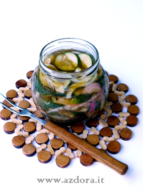 Огурцы нарезать на тонкие кружочки и положить в мисочку с маринадом. Закрыть плотной крышкой и хорошо потрясти. Убрать в холодильник.