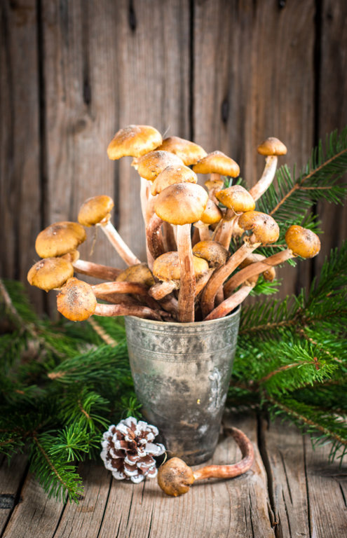 Влить горячий бульон и поварить всё вместе под крышкой около 30 минут или пока грибы и картофель не дойдут.