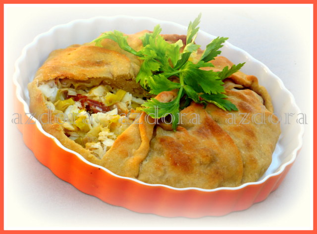 Собрать края теста в центре и защипить. Смазать тесто оливковым маслом и запекать при 170° около 50 минут.