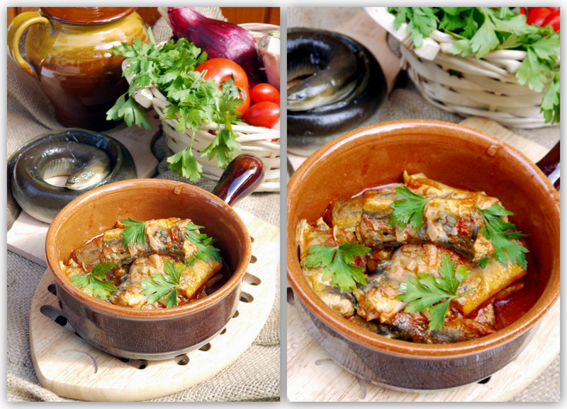 угорь в томатном соусе, ризотто из угря – это всего навсего некоторые из блюд. Угорь –это одна их тех рыб, которую сопровождают не белым, а красным вином.