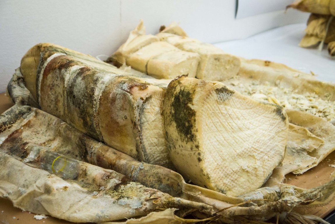 Так вот, эти самые канавы, назовём их колодцы, роют в туфе и имеют они глубину от 4 до 7 метров и 2 метра в диаметре. Этот самый туф – один из секретов успеха этого сыра. У этой разновидности горных пород высокая водостойкость, отличная теплоизоляция, другими словами, туф отлично переносит и жару, и мороз, и влагу. В колодцах, вырытых в туфе, создаётся особый микроклимат, который и придаёт неповторимый, уникальный вкус вызреваемому в них сыру.